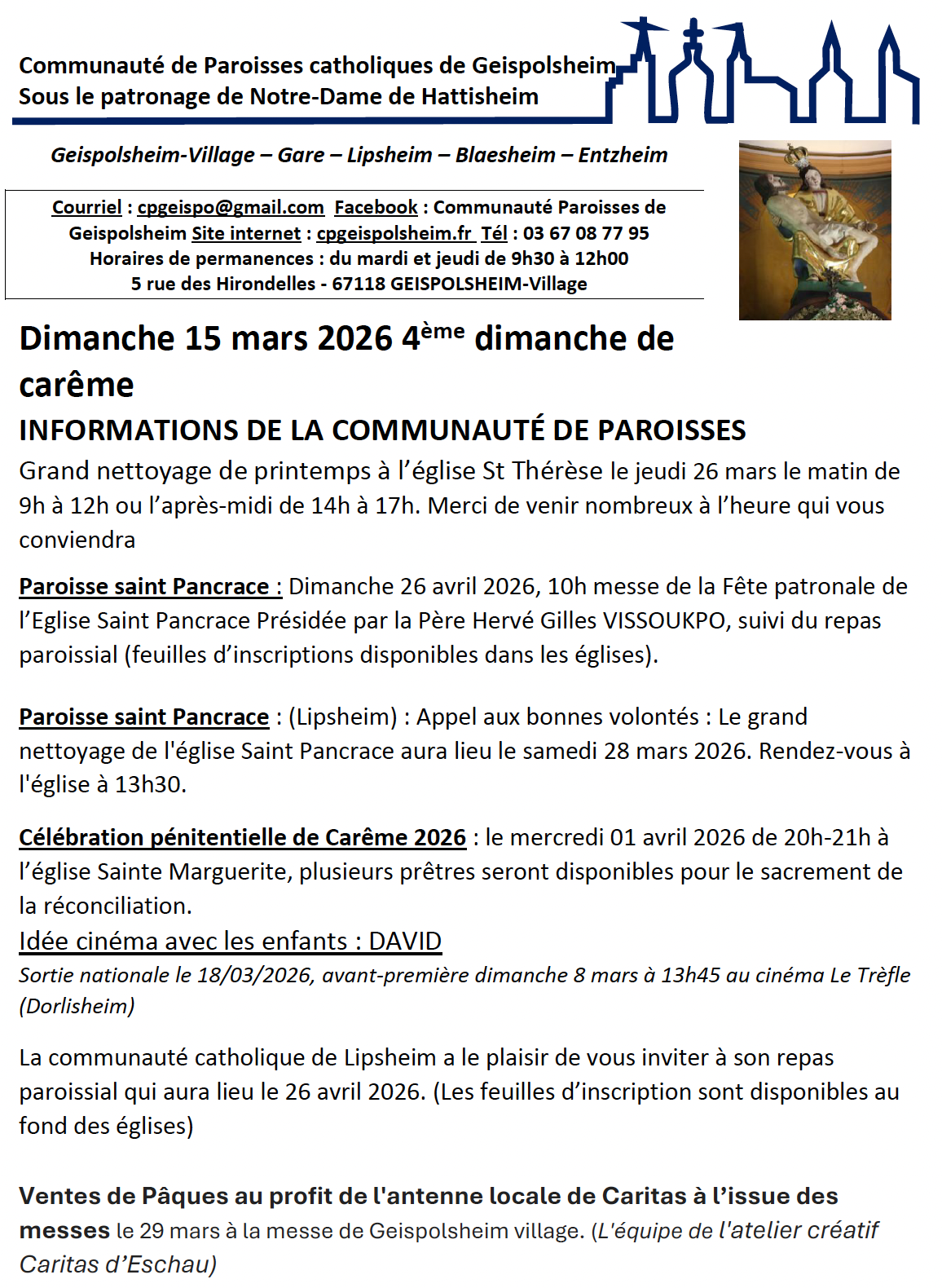 Horaire de messe du week-end